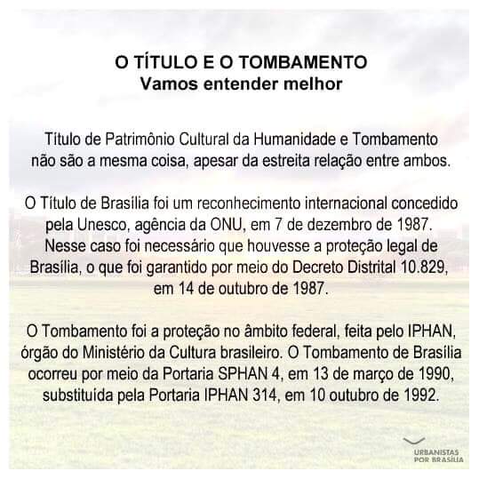 TOMBAMENTOS1982 - Igrejinha- Decreto - 6717 - de 28/04/19821987 - Conjunto Urbanístico do Plano Piloto- Brasília Patrimonio Cultural da Humanidade - Decreto 10829 de 14/10/19871988 - Escola-Classe- Decreto 11234 de 02/09/19882004 - Escola-Parque- Decreto 24.861, de 04/08/20042009 - Obra de Atos Bulcão- Decreto 31067 23/11/20092009 - Unidade de Vizinhança n°1- Decreto 30303 de 2009 - Tombamento Unidade Vizinhança nº 12011 - Jardins de Burle Marx- Levantamento Florístico 2009 - Levantamento Florístico 2009 - Paisagismo da Superquadra 308 Sul - Decreto 33224 de 27/09/2011 - Burlemarx Original 1 de 2 Leste - Burlemarx Original 2 de 2 Oeste